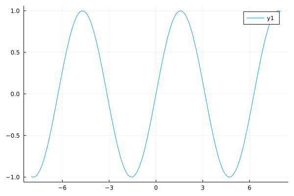 plot(sin,-8,8) # plot sin curve from -8 to 8
