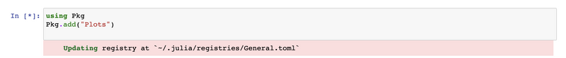 using Pkg Pkg.add("Plots")This would begin the process of downloading and installing the package.