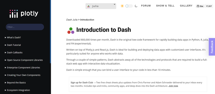 When I want to discover a framework, I directly go to the documentation page or the dedicated website. Here, we have to visit the Plotly Dash website.