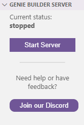 You have to click on Start Server in the Genie Builder Server panel. This step is mandatory to open the no-code interface for building the UI.