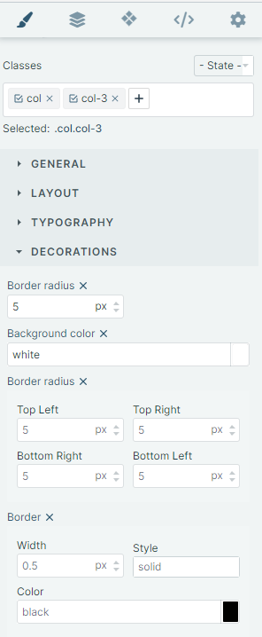 Finally, the decoration of the right column can be set by selecting the column, clicking on Open Style Manager (i.e. click on the pencil in the editor) and filling the Decorations section (see Figure below).