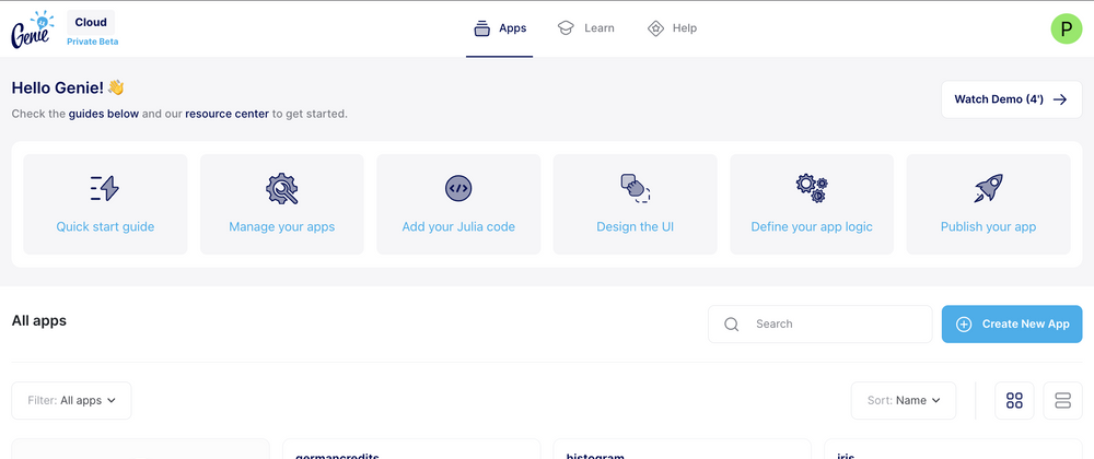 Genie Cloud is designed to help data scientists and researchers productize their Julia models with interactive, shareable web apps - without having to worry about frontend, backend development, or hosting.